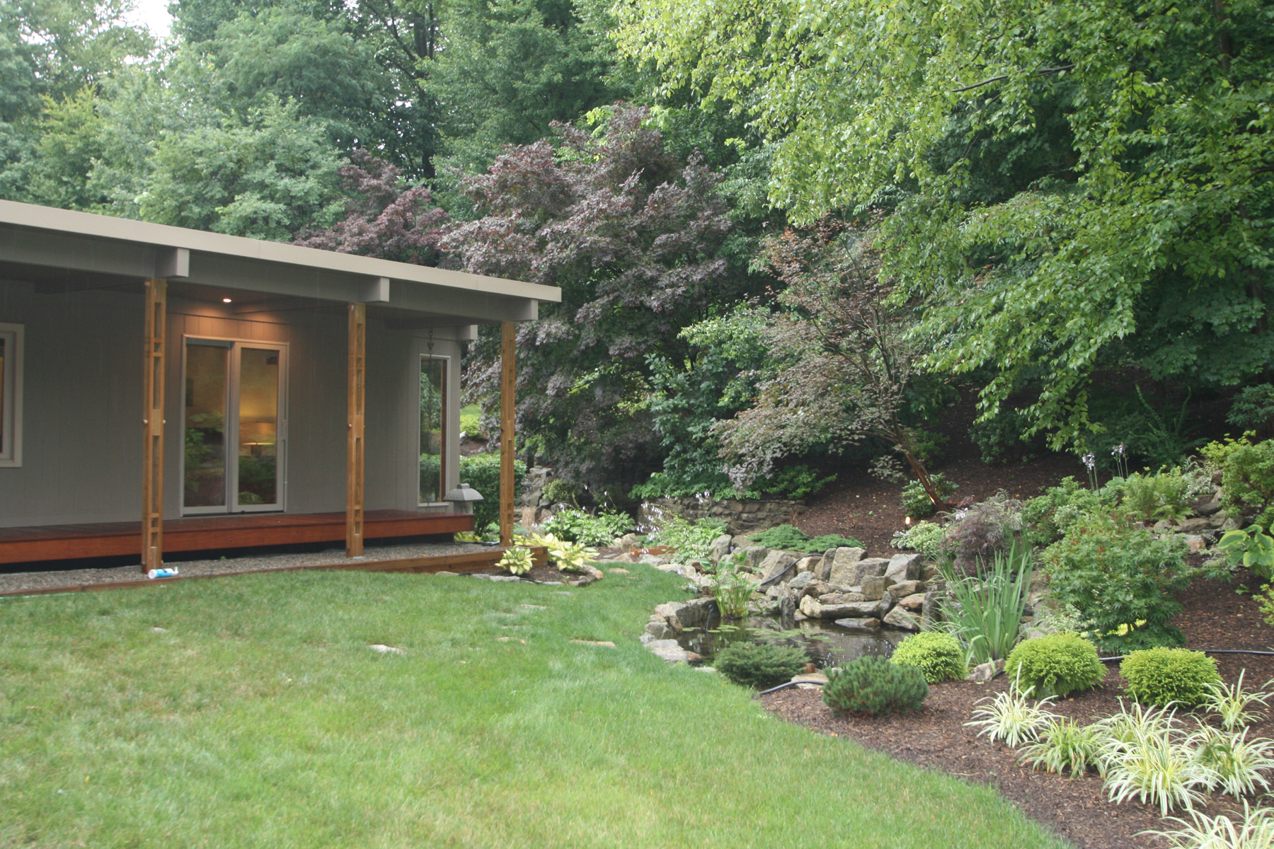 Leveraging the site's natural topography, we transformed a steep slope into a cascading waterfall that feeds into a serene koi pond. This design maximizes the sensory and "healing" qualities inherent in Japanese gardens, creating a meditative sanctuary for the homeowners. Beyond its beauty, the garden features a hand-constructed dry stream (kare-sawa) that serves a critical ecological function: it acts as a natural drainage system, capturing hillside runoff during heavy storms and safely channeling it into the pond.